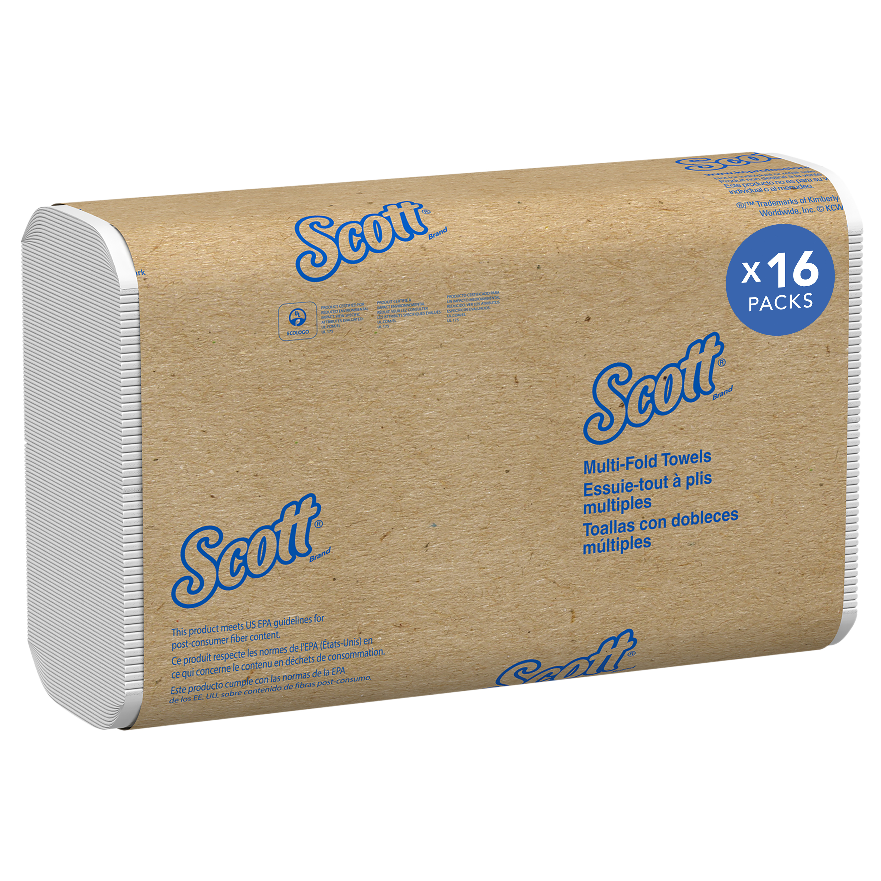 Scott Essential Multifold Paper Towels with Fast-Drying Absorbency Pockets, White, 16 Clips/Case, 250 Sheets/Clip, 4,000 Towels/Case